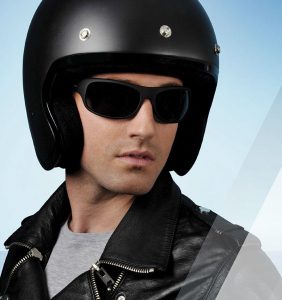 Si los desplazamientos se realizan en moto, la Dirección General de Tráfico (DGT) recomienda el uso de gafas de sol que puedan combinarse con el correcto uso del casco: que se deslicen en su interior sin ocasionar molestias. Aconseja, además, que las patillas sean flexibles para resistir choques. En caso de accidente o de impacto en el casco, las gafas de montura metálica o rígida pueden ocasionar daños al motorista. Los cristales de policarbonato son preferibles a las materias minerales por su resistencia