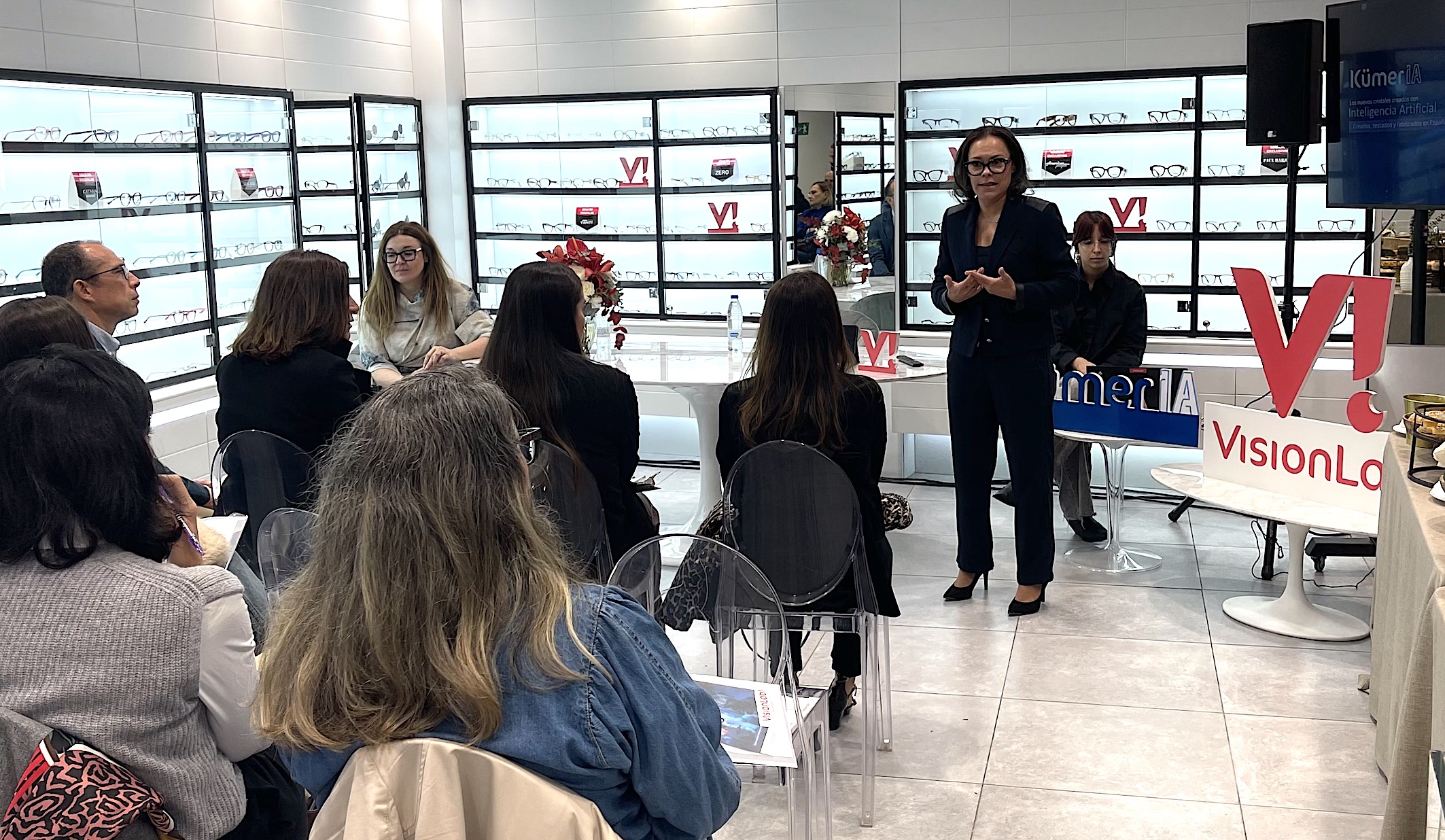 Este martes 19 de noviembre, VisionLab ha presentado Kümer IA, sus nuevos cristales creados mediante Inteligencia Artificial, en su tienda de Callao. Anne Delmas, directora general de VisionLab, y su equipo de expertos, así como Carolina Gago, directora general de IOT, mostraron a los medios de comunicación, entre los que se encontraba la revista Lookvision, las características de estas lentes, sus diferentes usos y la adaptación de la IA según el comportamiento de cada ojo, con la finalidad de crear una lente única y perfecta para cada usuario.