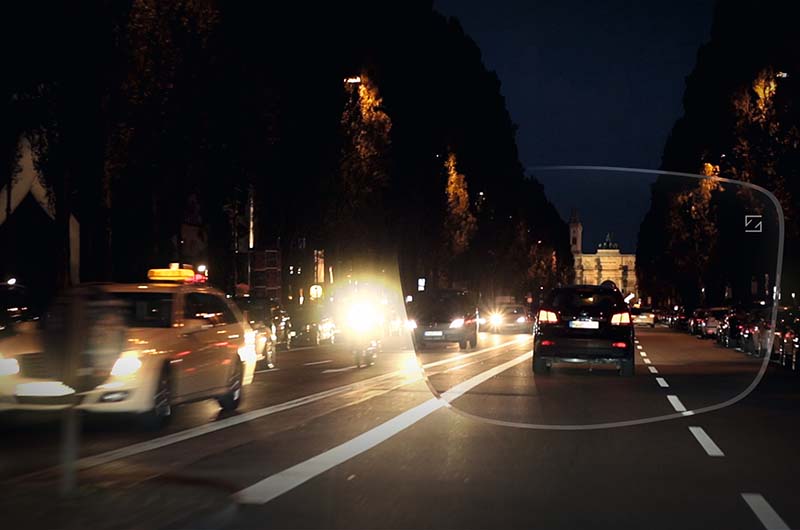 Las lentes de las gafas convencionales no tienen en cuenta este cambio. Por el contrario, el diseño de ZEISS DriveSafe toma en consideración el aumento de diámetro de la pupila del usuario cuando conduce con poca luz y su profundidad de enfoque se reduce, compensándolo mediante la Tecnología Luminance Design (TLD).